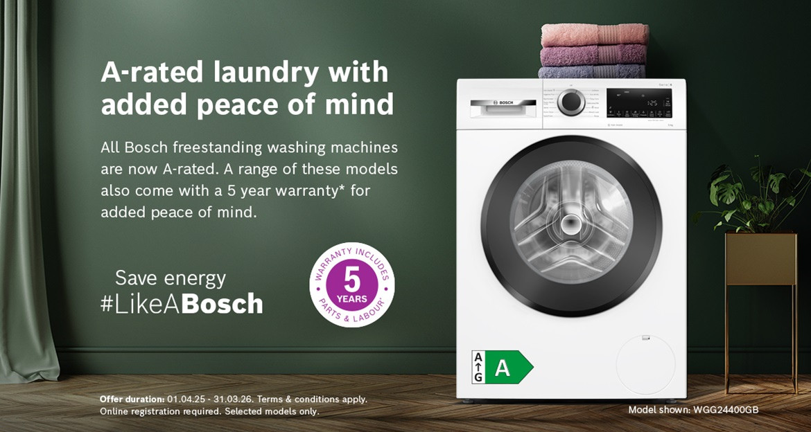 Enjoy piece of mind. Selected Bosch home appliances come with a free five-year warranty to protect against any manufacturing or material faults and defects during this period.