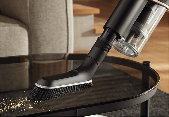 The universal brush features soft, natural bristles that gently and efficiently remove dust from sensitive surfaces.