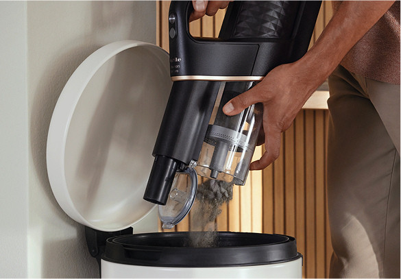 Empty the dust container quickly and hygienically at the touch of a button.