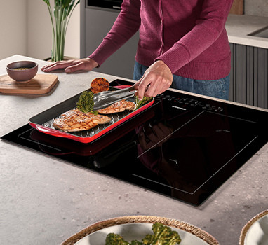 Induction hob technology only heats your pan’s surface, speeding up cooking and instantly cooling the cooking zone when the pan is removed.